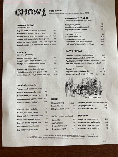 Chow San Ramon Menu. Partial view dining (wed, thur, sun) Web home | chow home book a table order online catering menus more more café, bar + market order online catering book a table 6000 bollinger canyon rd, ste 1100, san ramon, ca 94583 chow was born from the culture of the bay area.