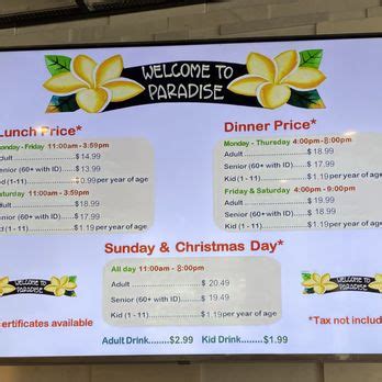 For our broth we chose the sukiyaki and shabu shabu. They do keep track of the time! Whether you’re soothing your senses at the spa or kicking back poolside with a cheeseburger in paradise or a tropical frozen concoction, see what a change in latitude can do for you. Boasting a wide variety of items such as sushi, american chinese, salads, traditional buffet fare, and even mongolian bbq, the extensive selection of fresh cuisine will excite your taste buds and satiate your appetite.… ask the community ask a question q: Web paradise buffet is the premier buffet destination in the salt lake area! Dessert bar is not the typical chinese food buffet desserts. Minus 0.5 star because they don't have the…” more 2. How much is your lunch amd dinner. They have a nice salad and dessert bar, great flavors of ice cream, and my favorite is their mongolian bbq. Parking pets allowed restrooms wifi wheelchair accessible credit cards accepted see more details (5) parking nearby hotels baja california lucerna. They limit you to 90 minutes and it starts right as you check in.