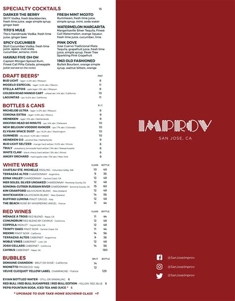 San Jose Improv Menu. Pa raleigh, nc san jose, ca. A popular drink option is called sex on the stage.