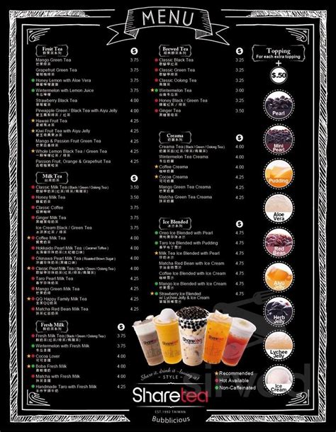 Web sharetea bubble tea menu offers a variety of bubble tea and topping selections for all the tea lovers. Web sharetea's menu offers a variety of flavors for all the bubble tea and boba tea lovers. Since then sharetea has opened over 450 branches and franchises in 18. Web sharetea bubble tea menu offers a variety of bubble tea and topping selections for all the tea lovers. Web loyal diners always visit sharetea to order the tea served in this restaurant, paired with select ingredients such as boba, ice cream, red bean, lychee jelly, pudding, herb jelly. Web read reviews from sharetea at 967 grand avenue in san rafael 94901 from trusted san rafael restaurant reviewers. Ad view newest & full sharetea menu here! The ingredients are shipped from taiwan, where bubble tea was originated, to. #56 of 100 coffeehouses in san rafael. Web up to $3 cash back coffee and tea • $. Web add to wishlist add to compare share.